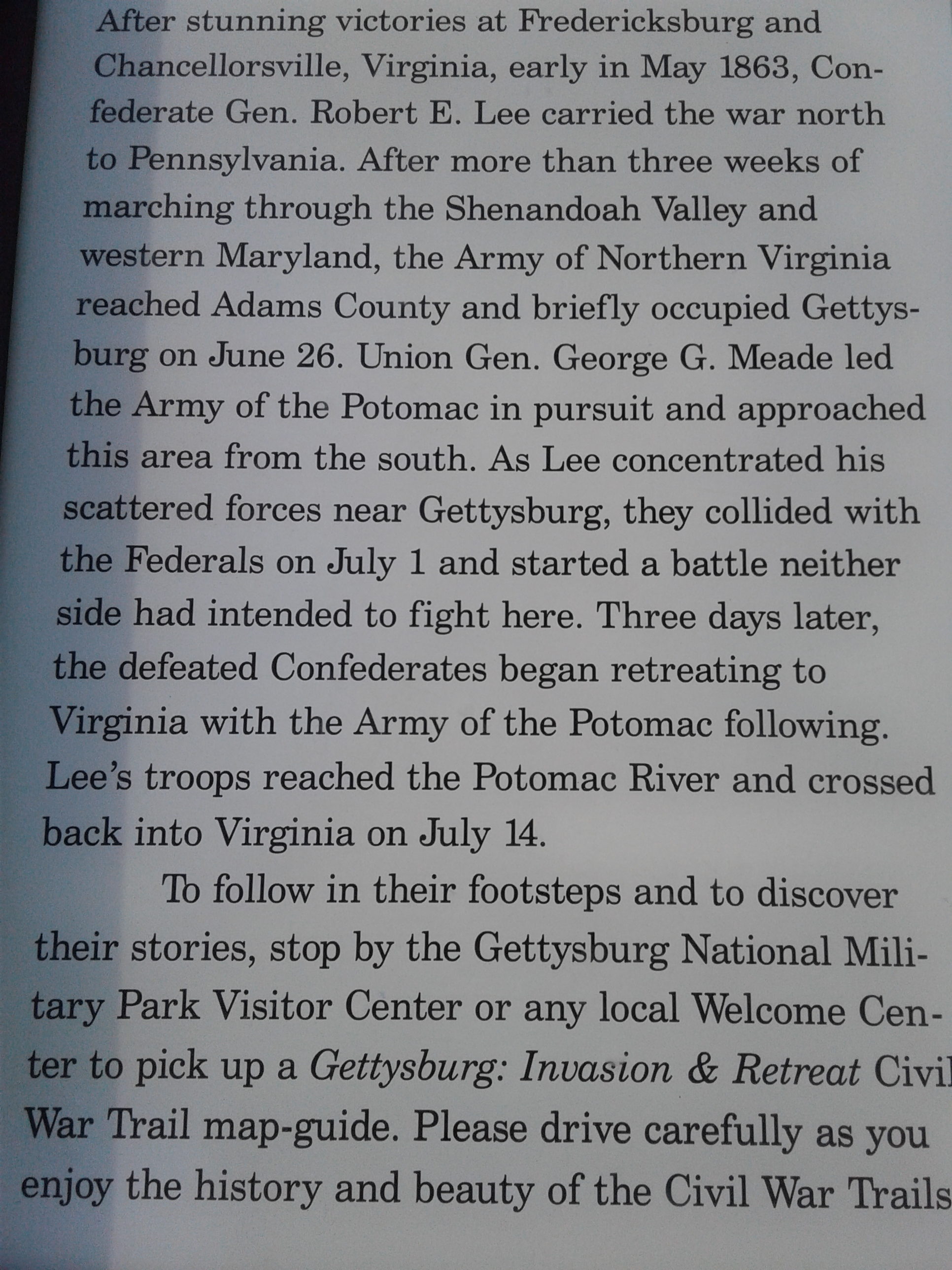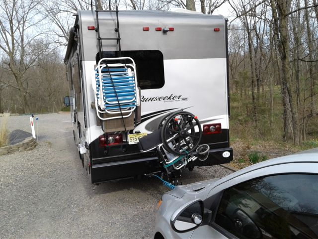 First stop, Gettysburg. after breakfast at Flemington IHOP. Had car key in the wrong position while towing, drained the battery. Got a jump from Al, husband of campground (CG) hostess, no further problems. Forgot some important stuff, Bob drove back home, returned the next morning.